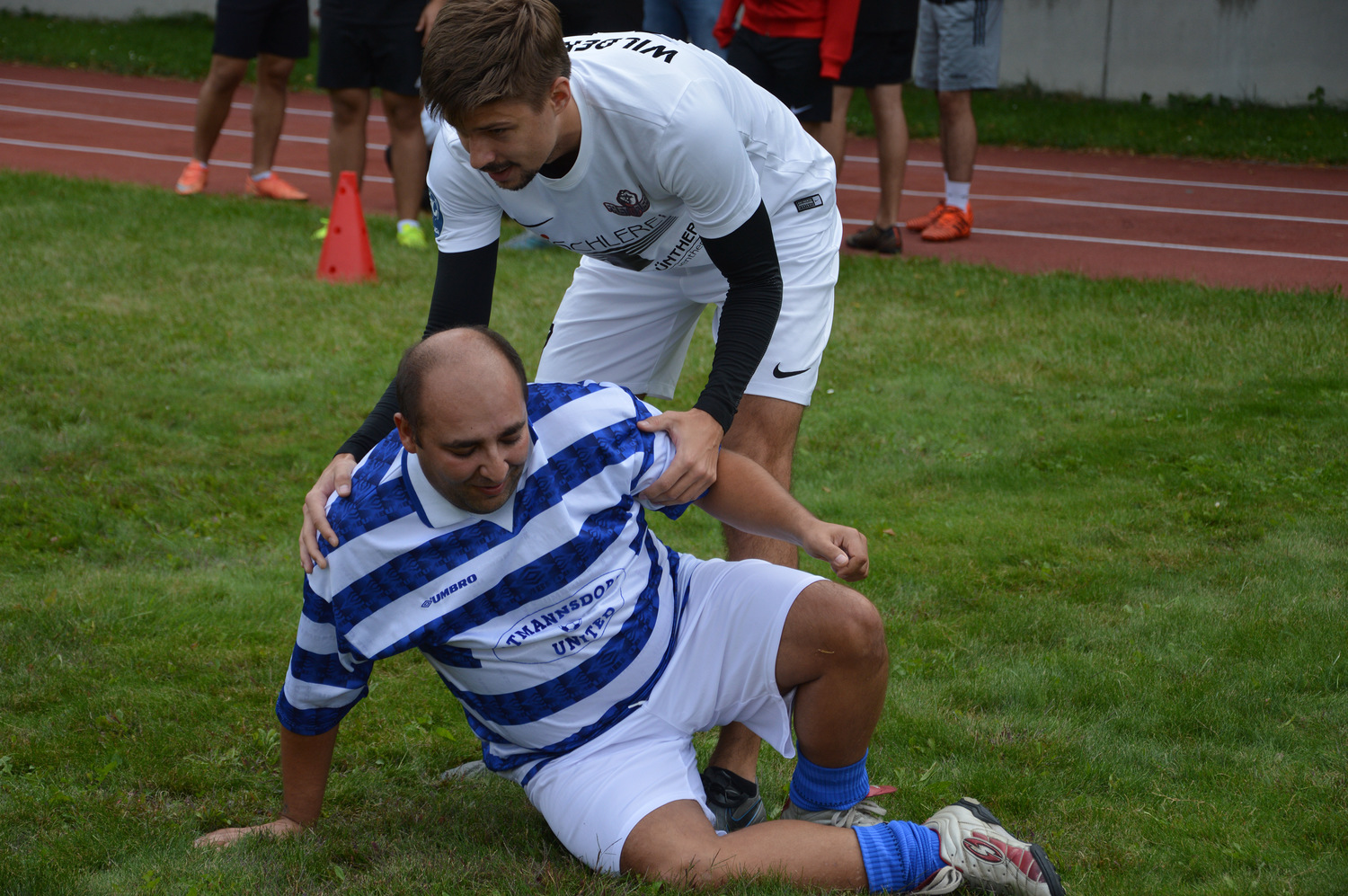 -Oder: Nach einem sehr engagierten und emotionalen Spiel sagten beide Mannschaften, dass sie fürs Fairplay Spiel null Punkte verdienen. Danach haben sie sich die Hände freundschaftlich gereicht.